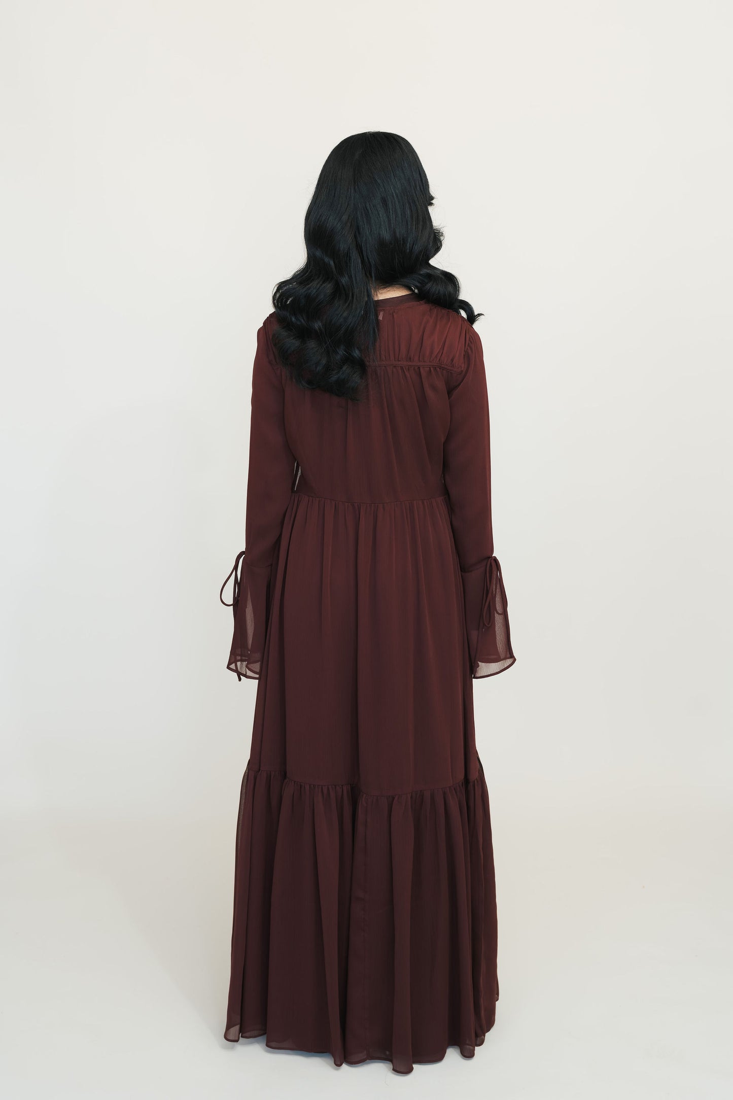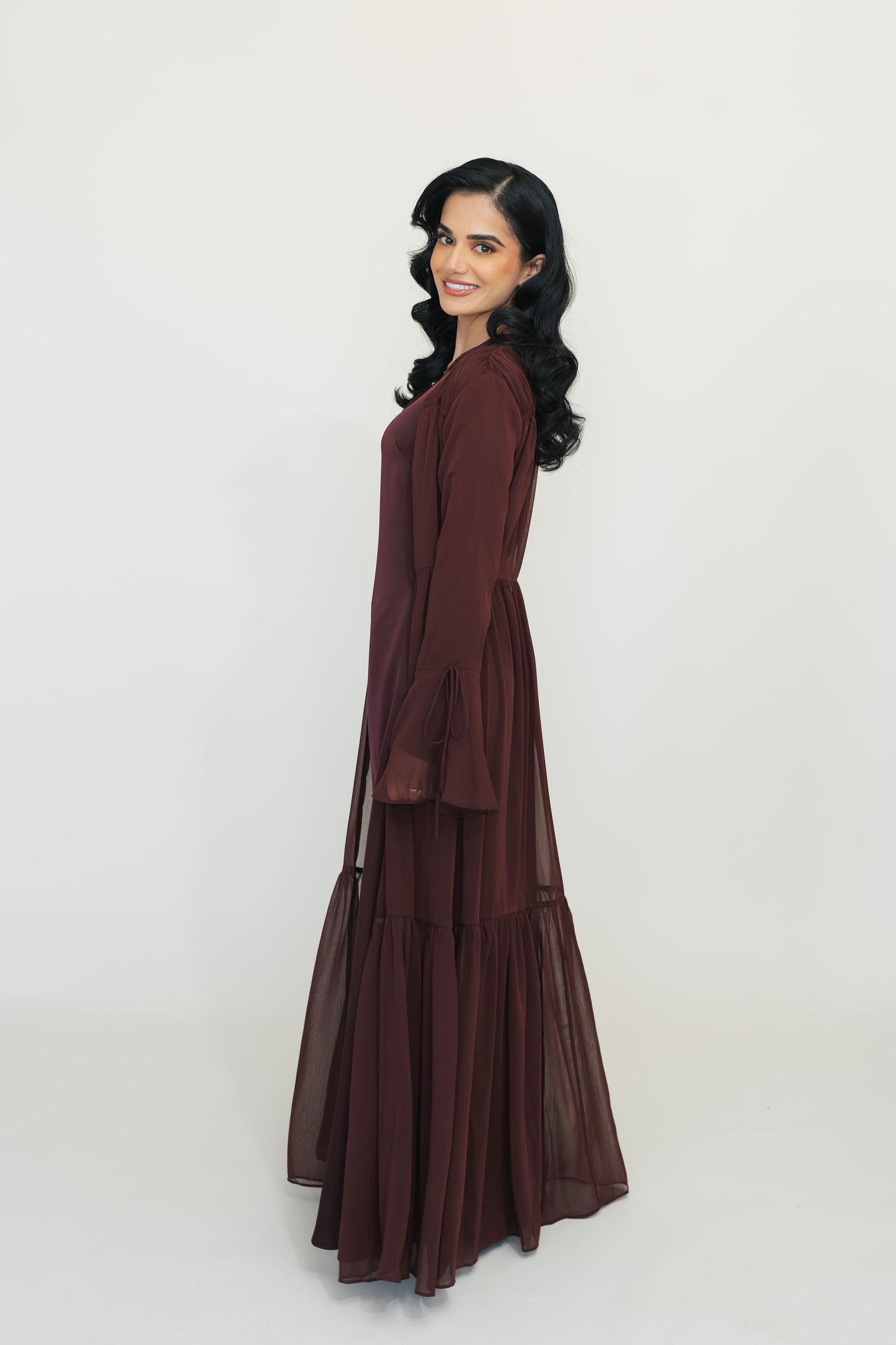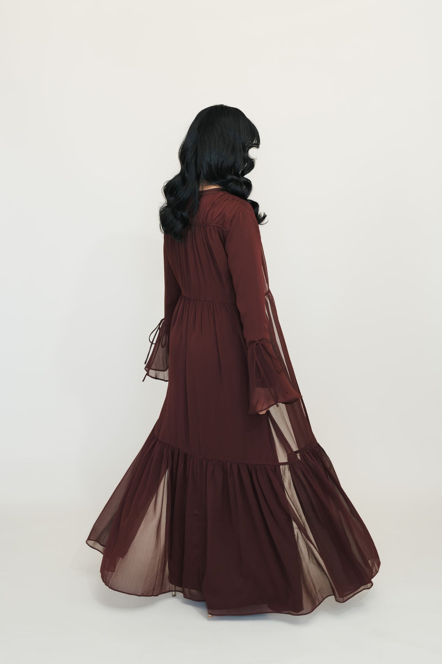 - Airy chiffon layer that flows beautifully with every step